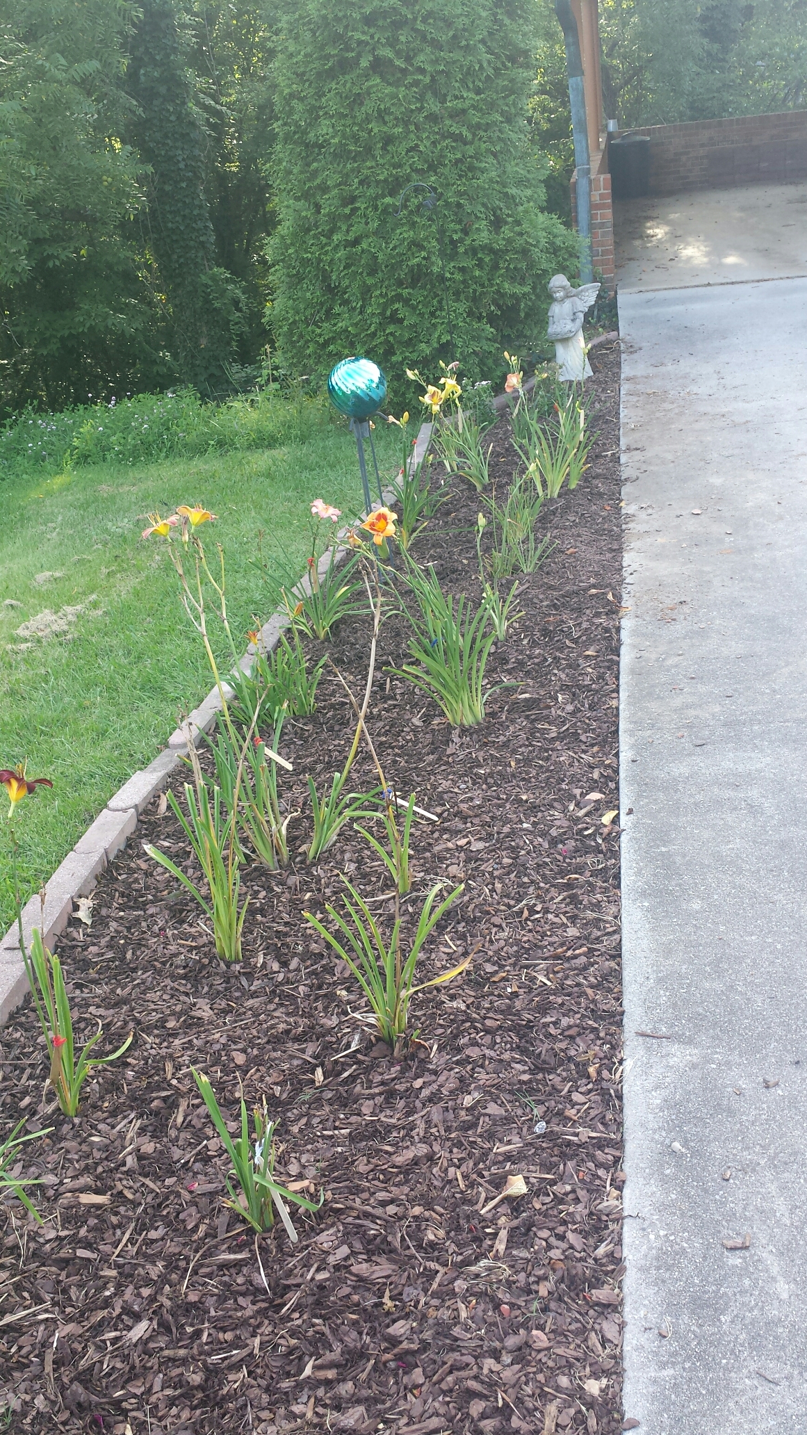 My mom and I just recently visited and between what I bought, what my mom got for me and the free blooms they gave us I came home with almost 10 new varieties. This was after my mom had gone the previous week and gotten me 5 others! So I decided to set up a bed down the right side of my driveway.