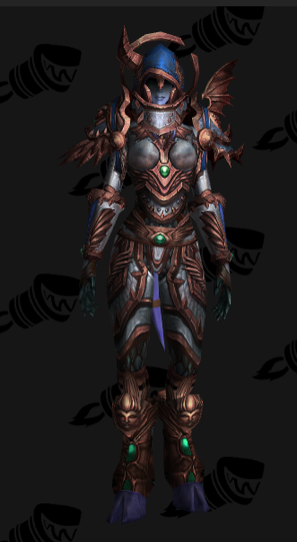 My favorite of all plate sets. This has pulled off, better than any set I’ve seen for plate wearers, a great theme. Good and evil, angel and devil. It’s just amazing. I have it for my own Ret Pally and you better bet I wear this beauty around all the time. Look at all the wings! And curves! The pièce de résistance is that helm with the hood, giving the wearer a sort of anonymity. I just picture a dark and tortured Paladin in this, is she going to kill you? Or is she going to save you?