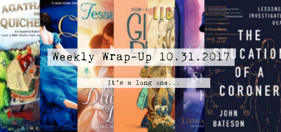 A full week! I didn’t really realize how much there was till I sat down to write this. What has everyone else read, how did everyone else’s week go? I also read one book for my final Victober wrap-up. I was going to talk about it here but let’s be honest, this is way to long already.