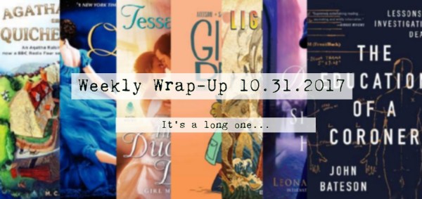 It was a slow week! I’m not going to lie, I spent most of it devoted to one honker of a book which I will talk about below. I think I might already picking up pace for the last week of Victober, so hopefully I’ll end on a high note! As always, you can listen... Continue Reading →